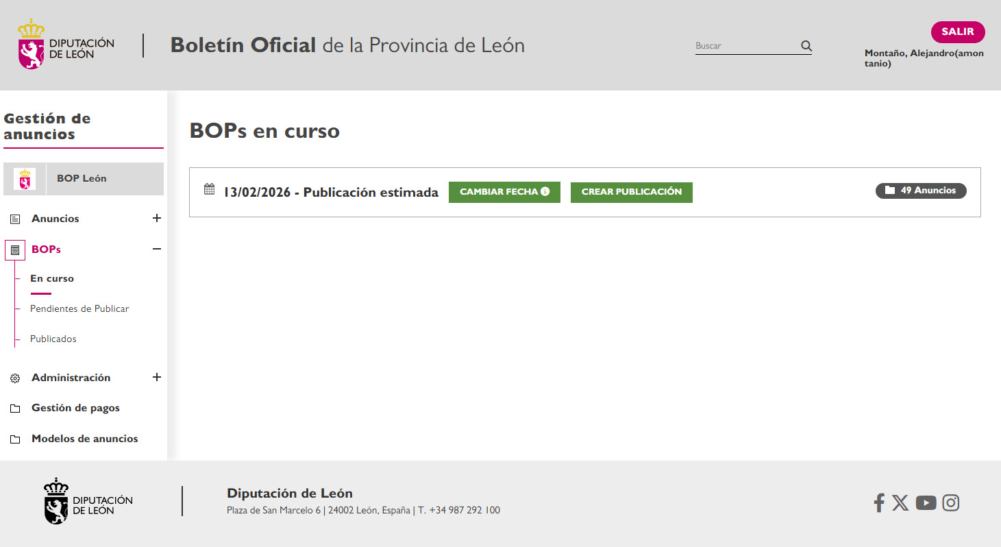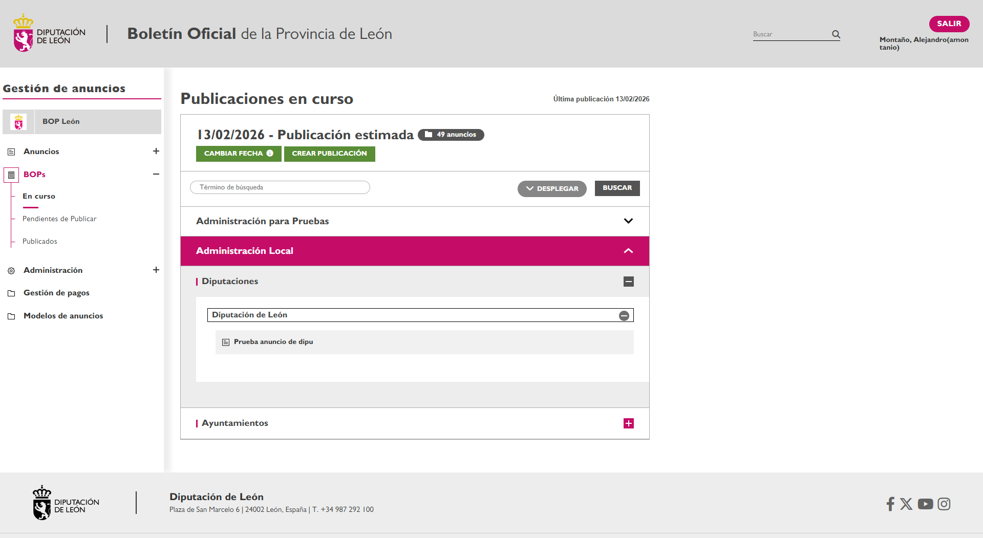 Cada vez que se crean y validan anuncios con una misma fecha de publicación, el sistema genera automáticamente un boletín en curso que agrupa todos esos anuncios.