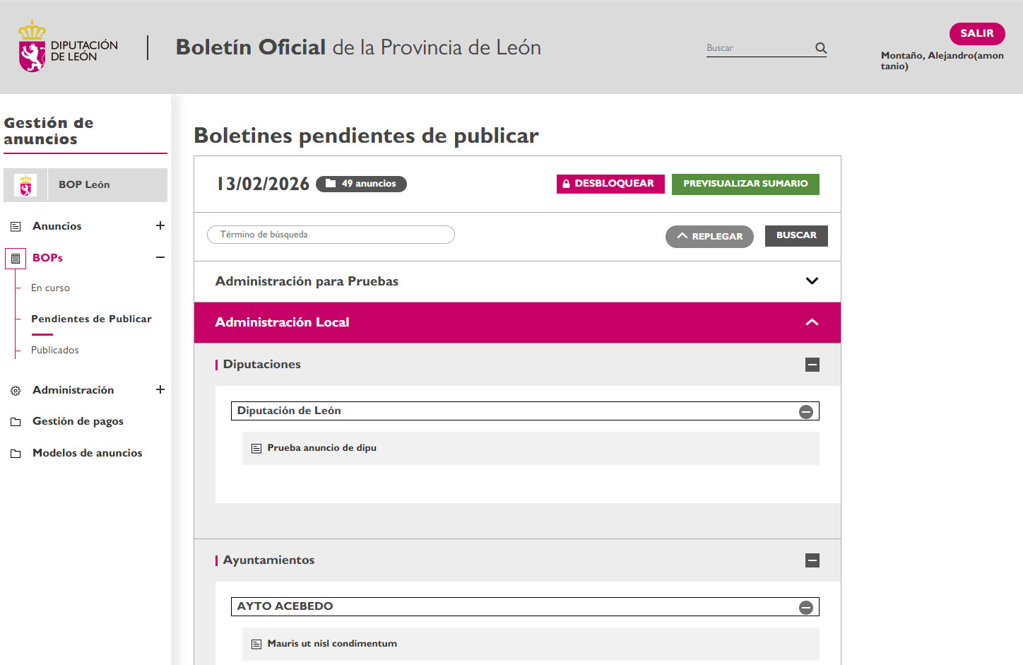 Módulo de Publicación y gestión de Boletines Oficiales (BOP)