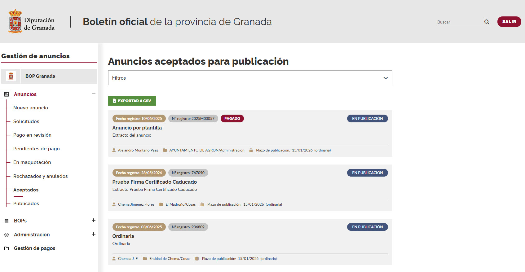 El módulo de administración de anuncios es una pieza clave dentro de la digitalización del Boletín Oficial de la Provincia.